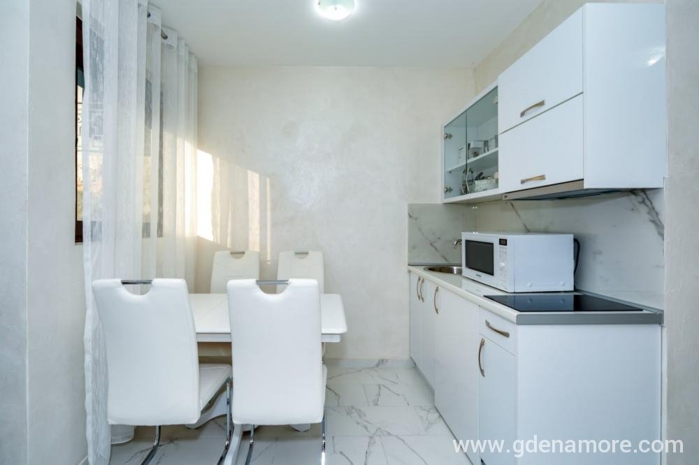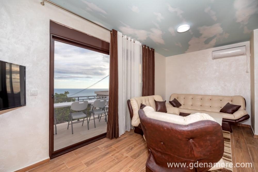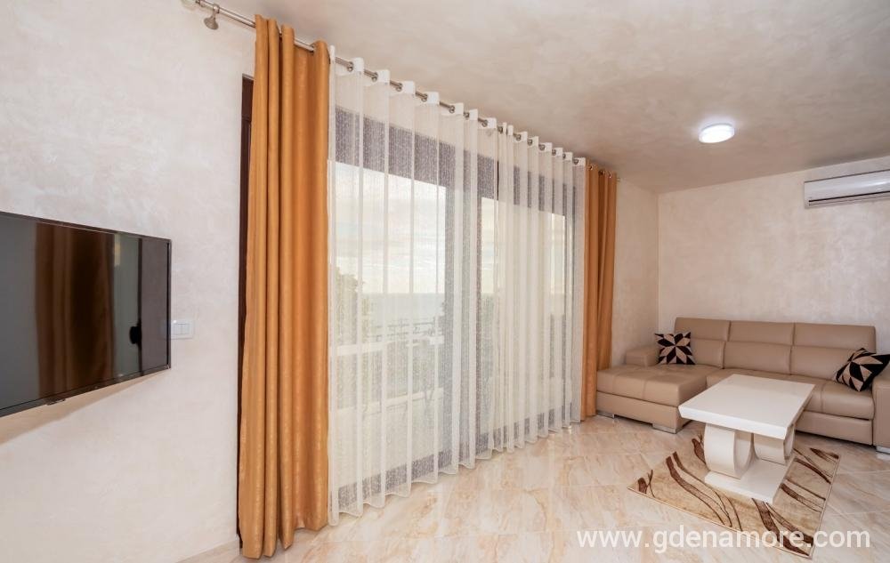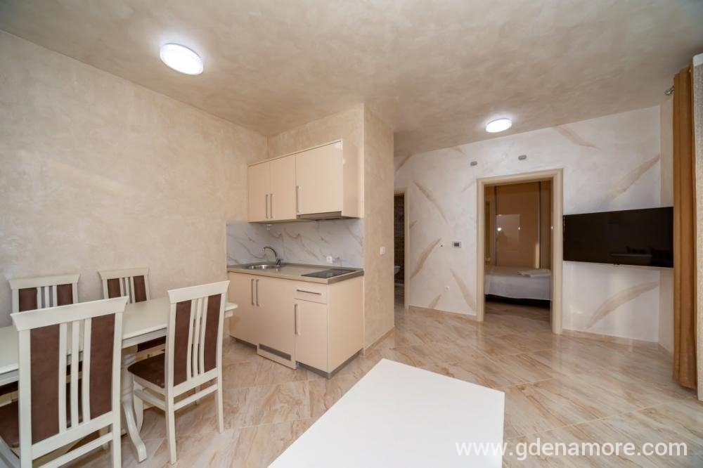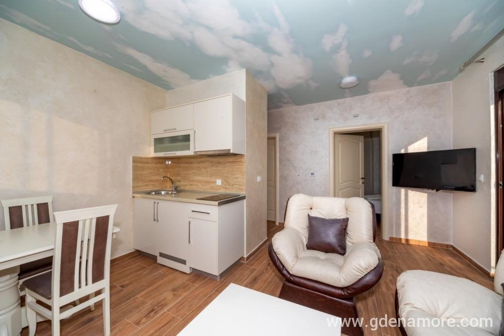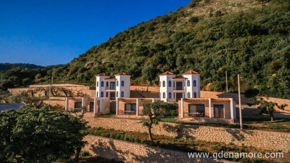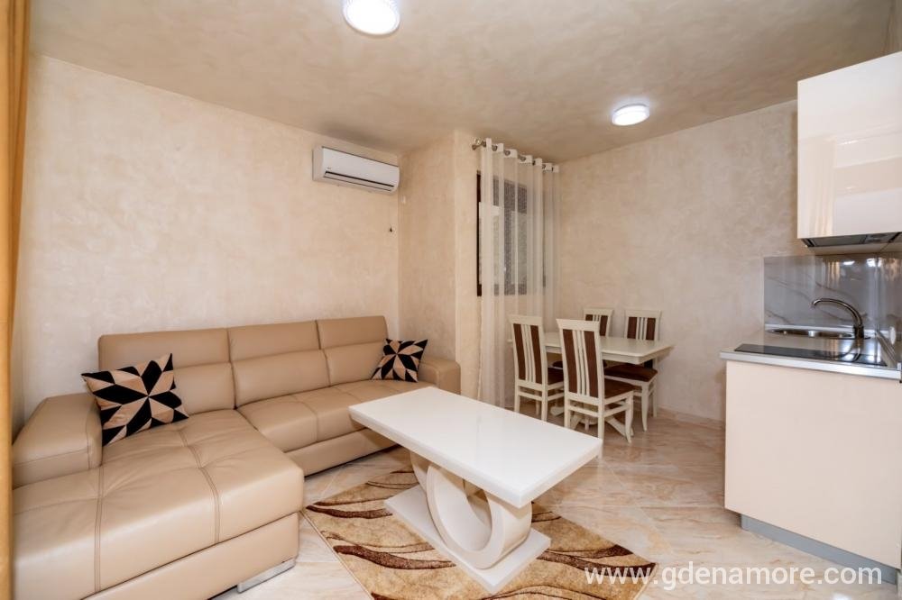 Jednosobni stanovi koji se nalaze na predivnoj, mirnoj lokaciji 3km od mora (5 minuta voznje kolima) sa predivnim pogledom na more i na grad. Ako volite prirodu, mir i tišinu nasi stanovi su pun pogodak za vas. U blizini na 500m imate restorane i markete. Objekat je okruzen predivnim maslinama koje su stare 500 godina.